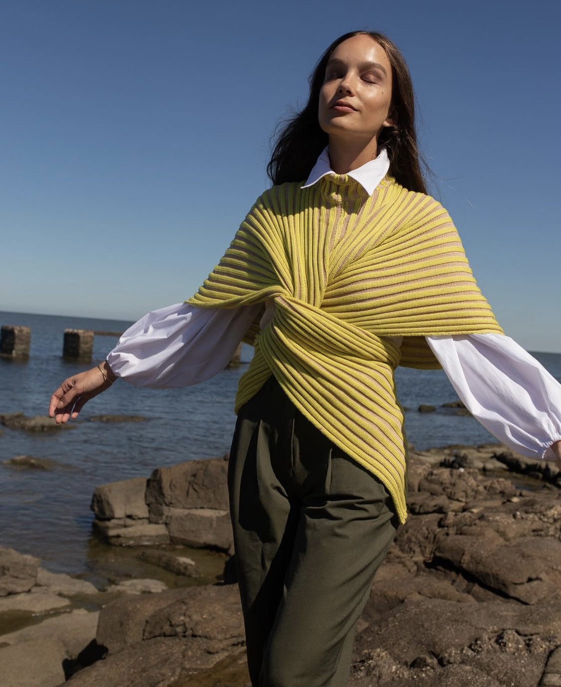 Sustainable and ethical luxury fashion, handcrafted using traditional artisanal techniques and natural fibers, where effortless style meets coastal bohemian