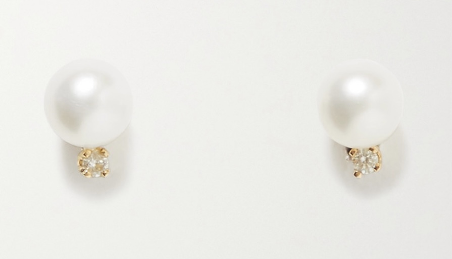 STONE AND STRAND Gold, pearl and diamond earrings $130 @Net-a-porter.com